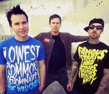 Tom DeLonge, Mark Hoppus y Travis Barker ofrecieron una presentación en Jimmy Kimmel Live! como parte de la promoción que...